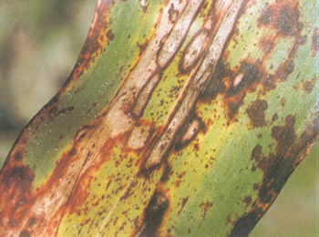 风、雨传播蔓延。下部叶片先发病,病剖产生新的分生孢子,进行多次再浸染。一般在7—8月份,降雨次数多,雨量偏大,气温较低条件下或年份,该病发生早且为害重。