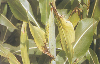 干旱无雨,7月份以后降雨增多、降雨量575mm,8月份达268mm,较历年偏多,且日照明显减少,7—8月空气湿度为78.7%—79%,温度较往年偏高0.5—2.5℃,这样潮湿闷热的天气,造成了叶点病的流行。近年,该病为害有上升趋势,严重的绝产或绝收。