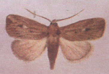 形态特征 成虫体长11—13mm,翅展27—29mm,前翅黄褐色,中脉总干白色直达翅基部,白色线条四周具黑暗纹。卵长0.6mm,椭圆形至馒头形,表面具细网纹。幼虫浅青色至污黄绿色,头部黄褐色,上生褐色八字纹。颅侧区具网状细纹,靠近单眼外侧部分的颜色较深,呈黑褐色,余为浅黄褐色,气门筛浅黄褐色,四周黑色。蛹与粘虫近似,但尾端外侧的l对钩刺基部膨大明显。